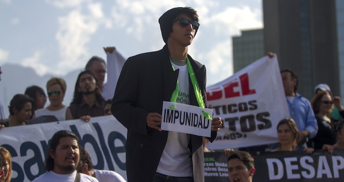 “La sociedad Nuevo León convoca porque está harta de: desapariciones forzadas, extorsiones, ejecuciones, feminicidios, violencia, corrupción, discriminación, violación a los derechos laborales, no reconocimiento a los derechos sexuales, abusos policiacos”, citó el texto.