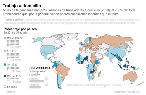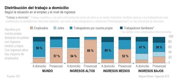En general, las condiciones de los trabajadores a domicilio han sido peores que las de aquellos que siempre han trabajado fuera de sus hogares, con salarios más bajos, mayores riesgos de seguridad y salud, y menor acceso a la protección social y a la formación.
