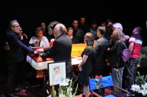 Con su féretro al centro del recintos, un cuarteto de cuerdas dio inicio al homenaje póstumo, al que le siguieron los discursos de amigos, compañeros y familiares.