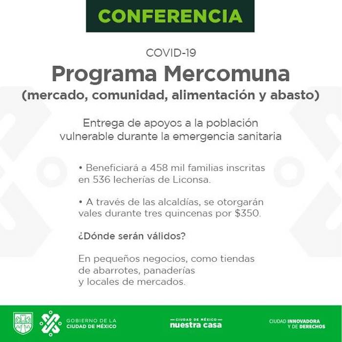 En conferencia de prensa, la Jefa de Gobierno dio a conocer que el apoyo está destinado a beneficiarios de Liconsa, y que podrá ser válido en las 536 lecherías ubicadas en lo largo y ancho de la capital mexicana. Asimismo, detalló que los vales podrán ser canjeables básicamente por alimentos.