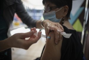 Una mujer recibe la segunda dosis de la vacuna Sinovac contra la COVID-19 en Santiago, Chile. Foto: Esteban Félix, AP.