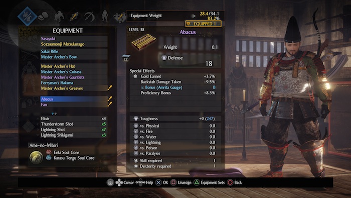 La personalización de nuestros personajes es de las funciones más increíbles que tiene el juego, desde el inicio nos ofrece una gran variedad de cambios estéticos en el personaje que hagamos, desde el género que queramos escoger, hasta el tipo de cabello, cuerpo, nariz, boca, rasgos faciales, voz y hasta la forma que podremos tener cuando entremos en estado "Yokai"; gracias a este tipo de detalles, uno como jugador agradece las opciones ilimitadas para hacer de nuestra partida algo único con un personaje que estará adaptado a la forma que nosotros queramos. Además de esto, retomamos elementos de Dark Souls como las armas y armadura, haciendo que en la mayoría de las veces que derrotemos a un enemigo o encontremos algún cofre, podamos encontrar una pieza de armadura o arma que ayudará a nuestros datos de habilidades, destreza, magia, fuerza, etc.