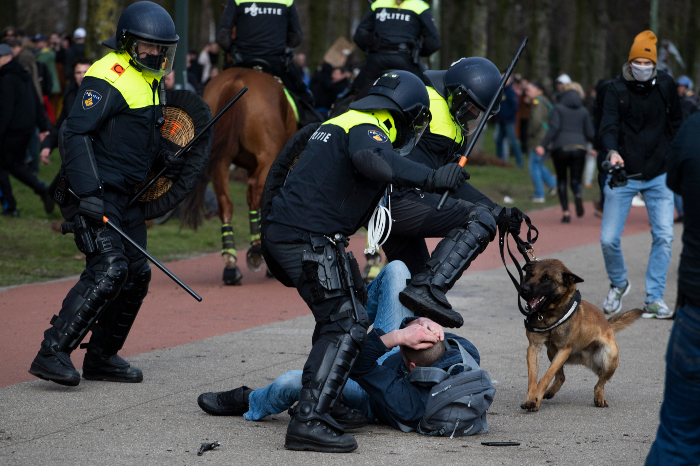 Una protesta contra las medidas restrictivas adoptadas por el Gobierno en funciones de Países Bajos contra la pandemia congregó este domingo a varios cientos de personas en La Haya y terminó en disturbios, con al menos 20 detenidos, en víspera de las elecciones generales.