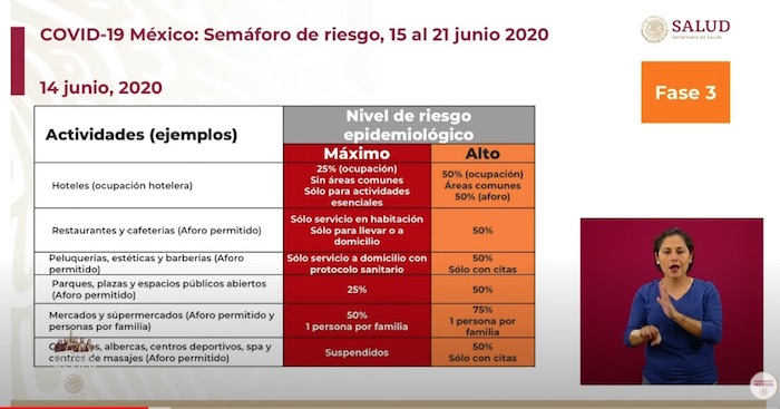 Para los estados que están en Semáforo Rojo, la ocupación hotelera, de restaurantes y parques será del 25 por ciento.