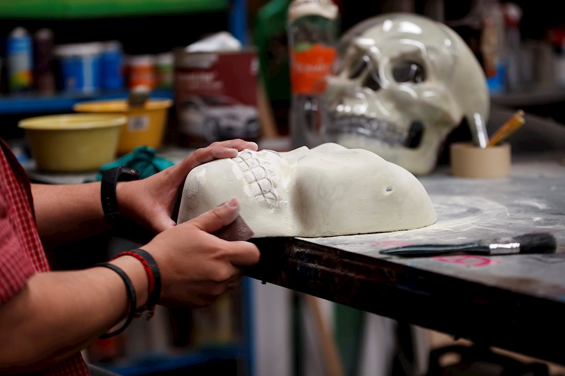 "Siempre hemos pensado que el ingenio es el súper poder del mexicano, viene implícito en su ADN, entonces tomamos uno de los temas más representativos de nuestra compañía, que se dedica a hacer altares, desfiles del Día de Muertos o eventos que tienen que ver con esta identidad de México. Pues hagamos una careta con forma de calavera", explicó a Efe el coordinador del taller, Paco Enríquez.