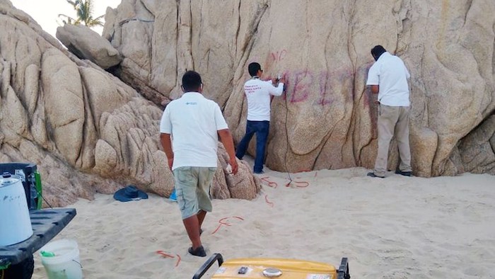 FOTOS: Las rocas de una playa en Los Cabos, BC, son vandalizadas con aerosol, denuncian en redes