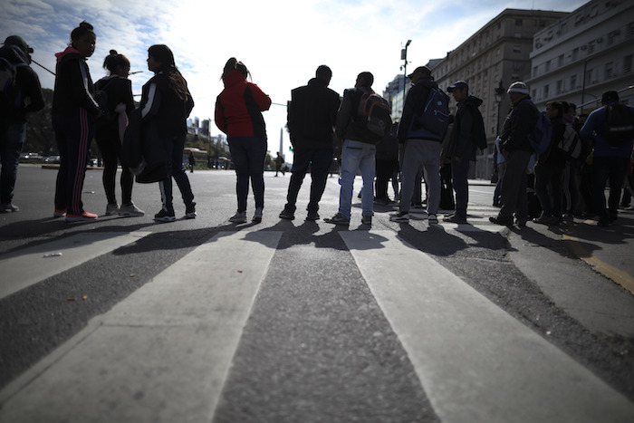 Una avenida céntrica de Buenos Aires se llenó de manifestantes el jueves en protesta por la crisis y el deterioro de su situación. La pobreza se incrementó en los últimos meses, afectando a más de 32 por ciento de la población.