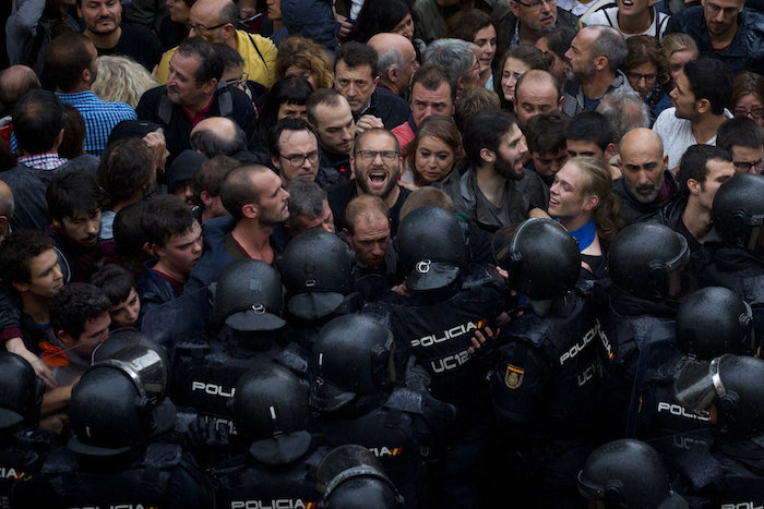 El resultado ha sido bochornoso. Urnas rotas, papeletas esparcidas en el suelo bajo la lluvia, votos sin control alguno. En resumen, un desastre que no puede ser calificado ni siquiera de simulacro de referéndum. Pero estos detalles han quedado en un segundo plano. La noticia que acaparó los titulares el día 1 de octubre fue la atroz y desproporcionada represión llevada a cabo por las fuerzas de seguridad españolas para impedir que se votara. El gobierno Español envió fuerzas de seguridad a Cataluña, y estas, cómo no, fueron recibidas como un ejército de ocupación. Las imágenes hablan por sí mismas: ancianitas golpeadas mientras se dirigían a votar, familias con niños aporreados, gente pacífica zarandeada y maltratada como si fueran delincuentes. 800 heridos. Un escándalo internacional.