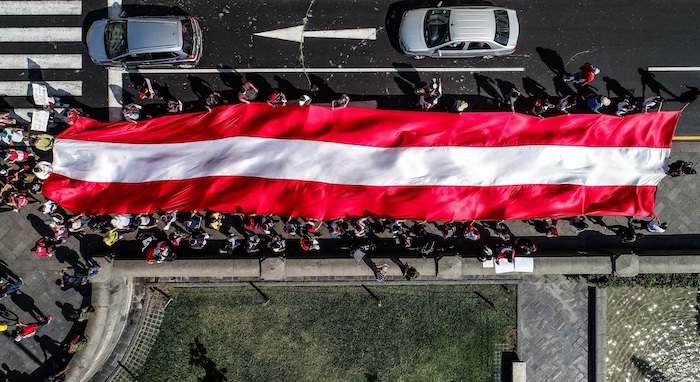 Decenas de miles de peruanos marcharon por calles y avenidas de todo el país en una movilización de rechazo espontánea, coordinada tan solo a través de redes sociales, sin líderes ni portavoces, muy diversa, mayoritariamente joven y con una dominante presencia femenina.