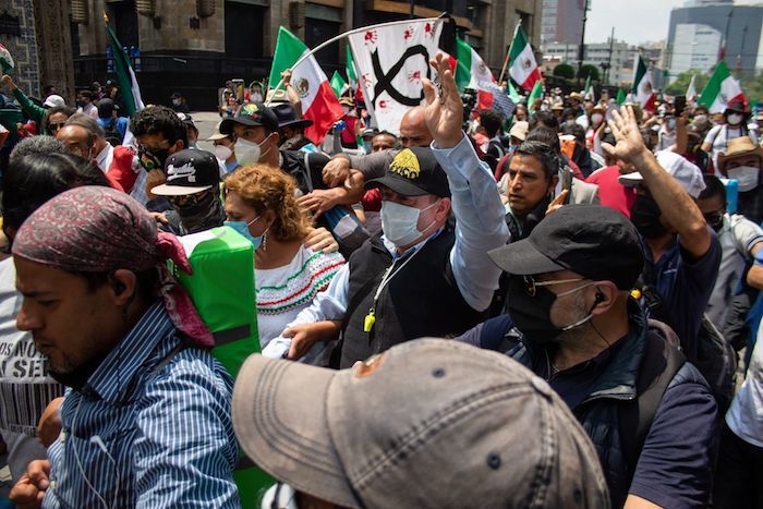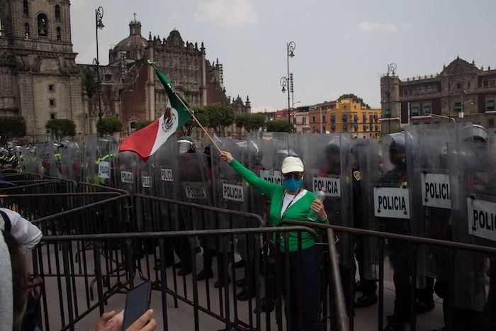 En septiembre, seguidores del Presidente Andrés Manuel López Obrador marcharon ante los integrantes del Frente Nacional Anti Andrés Manuel López Obrador (FRENA) en el Zócalo de la Ciudad de México.