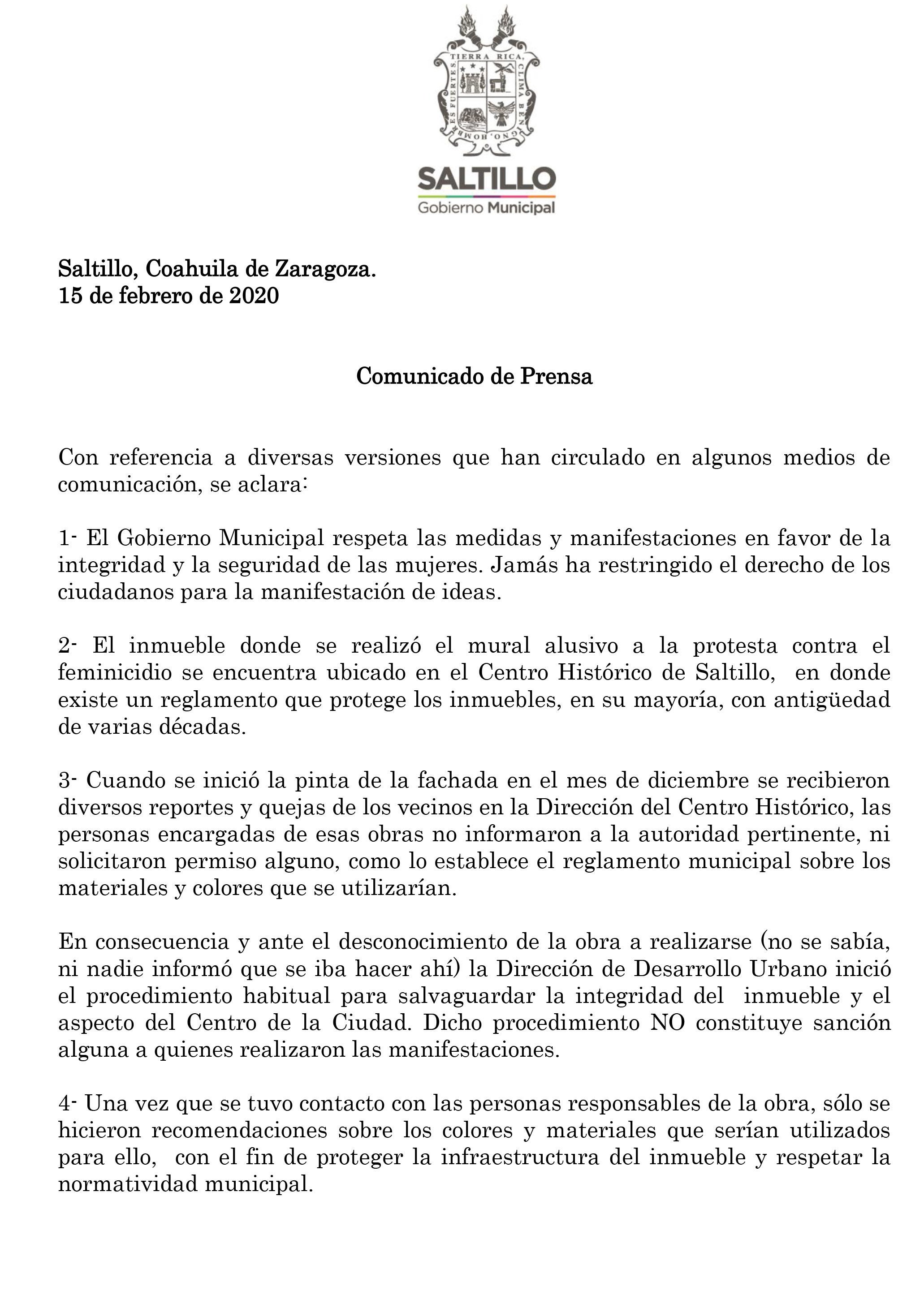 Sobre los hechos el Ayuntamiento de Saltillo emitió el siguiente comunicado: