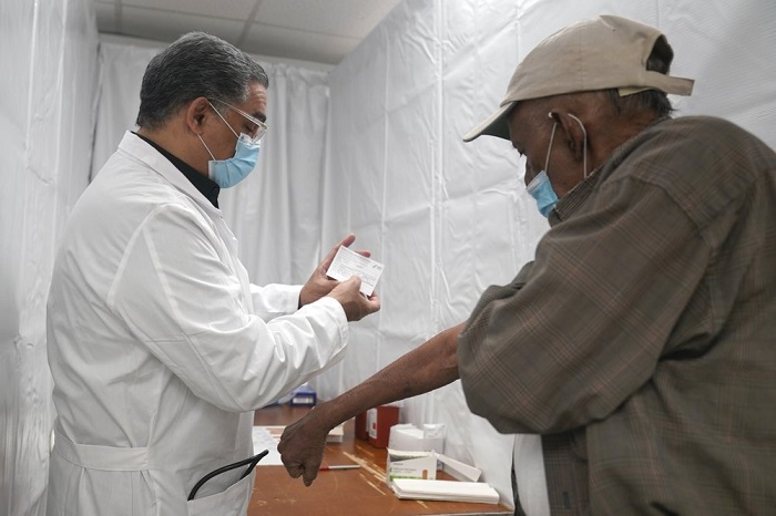 Nellie Hernández, una puertorriqueña de 73 años, dijo que tras sobrevivir cáncer de garganta y ver a amigos fallecer debido a la COVID-19 se siente aliviada de haber recibido una segunda dosis de la vacuna por parte del doctor Peralta.