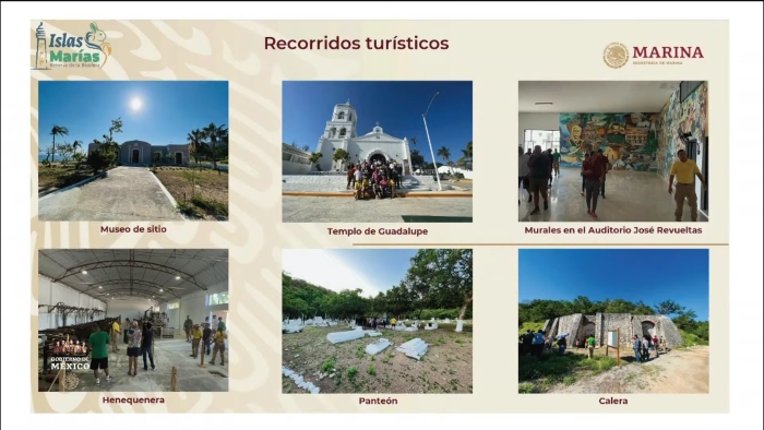 "Se tiene contemplado del 21 al 23 es la fecha que tenemos para la recepción de todos los que nos quieran visitar. Está abierto y estamos listos; en la siguiente semana ya, desde el mismo miércoles 28 al viernes 30 de igual forma estará habilitado. A partir de enero, nos movemos a los fines de semana. Todos los fines de semana a partir de Mazatlán, en donde podremos llevar a cabo este proceso de visita y que puedan estar con nosotros. También si la demanda tiene cabida a partir de San Blas, podemos incluirlo, porque de entrada vamos a ir creciendo gradualmente en operación para considerar ambos puntos de partida. Islas Marías es un lugar de naturaleza, cultura y libertad. Estamos listos para recibirlos y queremos que nos visiten", expresó.