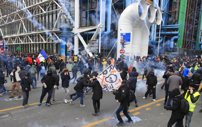 Las semanas de huelgas y protestas han paralizado parcialmente el transporte público, escuelas, hospitales, tribunales, teatros de ópera y la torre Eiffel.