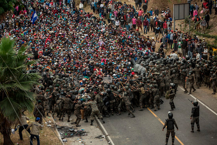 Las fuerzas de seguridad de Guatemala reprendieron violentamente una caravana de miles migrantes hondureños que pretendían llegar a Estados Unidos; según Efe los migrantes fueron atacados con palos y gas lacrimógeno por parte del ejército de Guatemala.