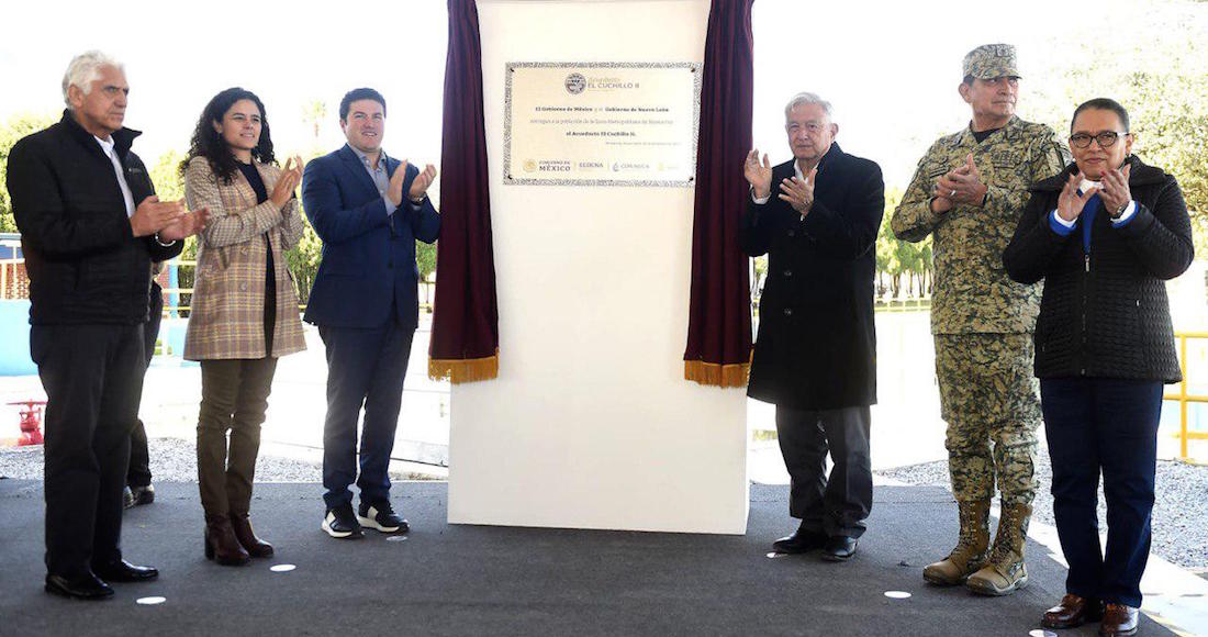Además, recordó que en el periodo 2022-2023 en la Zona Metropolitana de Monterrey se enfrentó una disminución de lluvias sin precedentes, lo que provocó bajos niveles de almacenamiento en las presas La Boca y Cerro Prieto. Por ello, "se atendió la instrucción del Presidente Andrés Manuel López Obrador de construir en tiempo récord el acueducto El Cuchillo II, para suministrar cinco mil litros por segundo, en beneficio de 5.4 millones de habitantes".