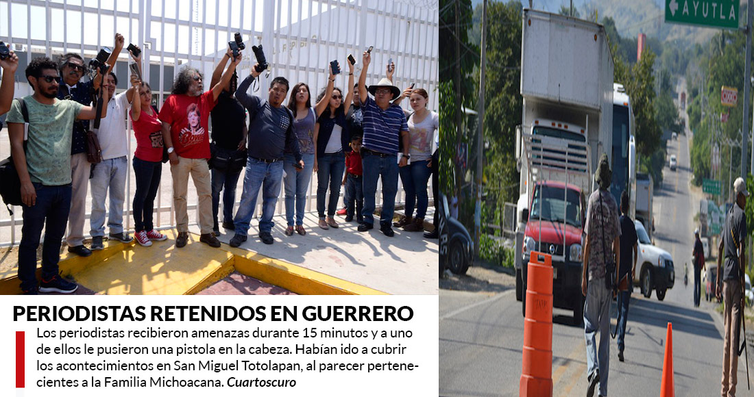 Un policía preventivo que se identificó como Marco Antonio Pérez Peralta subió a una de las torres de vigilancia que dan a la avenida Bicentenario en donde estaban los reporteros, gritó que los agentes estatales y soldados “nos tienen secuestrados” y que no les permitían comer, tomar agua ni ir al baño”, y que tampoco sabían a qué hora los dejarían salir, “no nos están golpeando pero se ponen agresivos, revisan hasta las bolsas, eso va contra la ley”.
