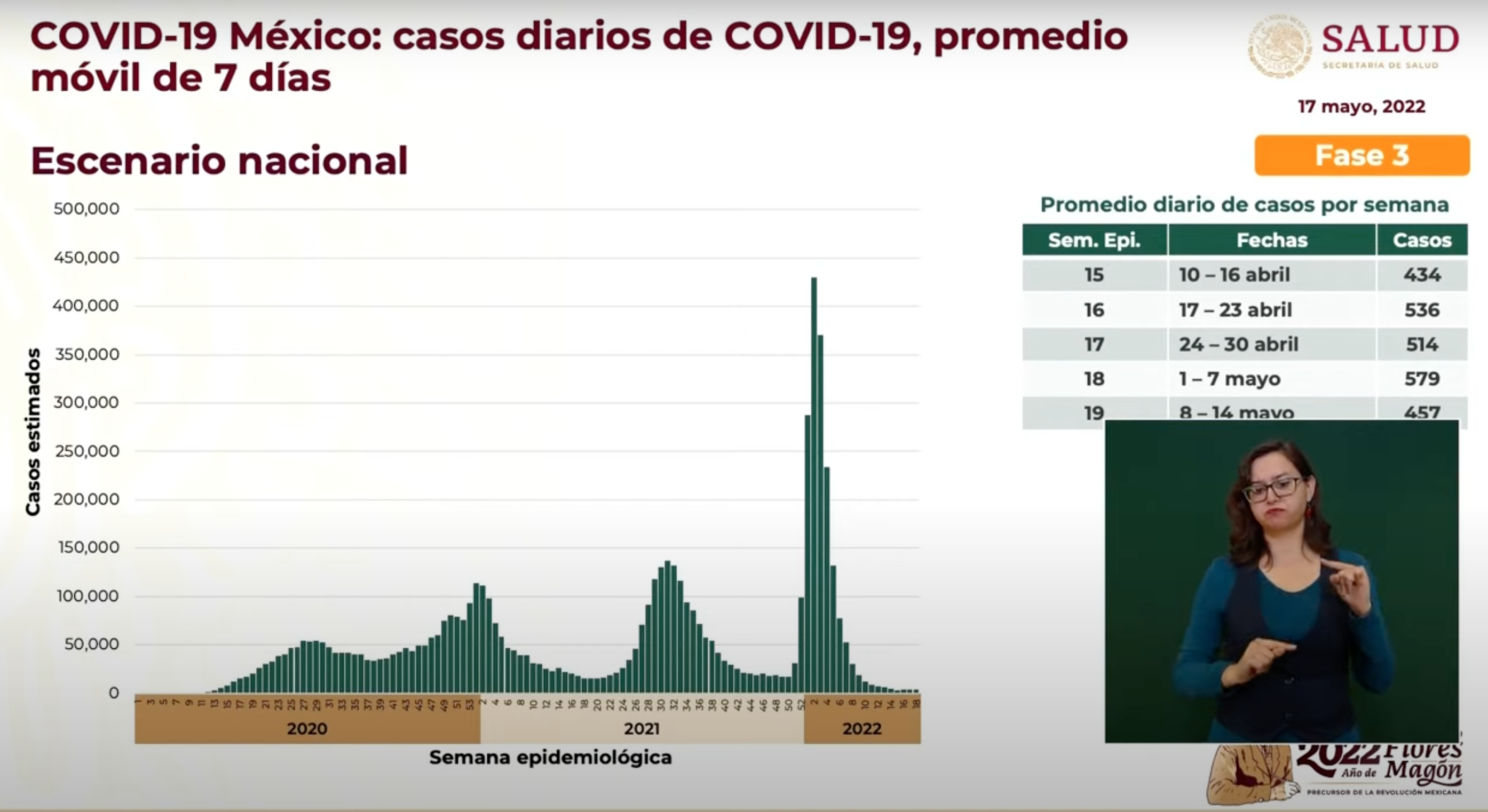 Además el Subsecretario informó que en el caso de los decesos por la COVID-19, ya se tiene "menos de una defunción diaria en promedio en las últimas semanas, y en concreto en la semana 19, la semana más reciente".