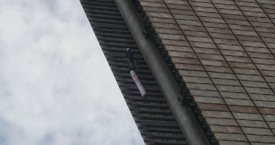Veinte horas después de terminar la instalación, integrantes del Heroico Cuerpo de Bomberos tuvieron que acudir a la zona para retirar dicha manta, esto bajo el argumento de un posible riesgo por "desprendimiento parcial de lona".