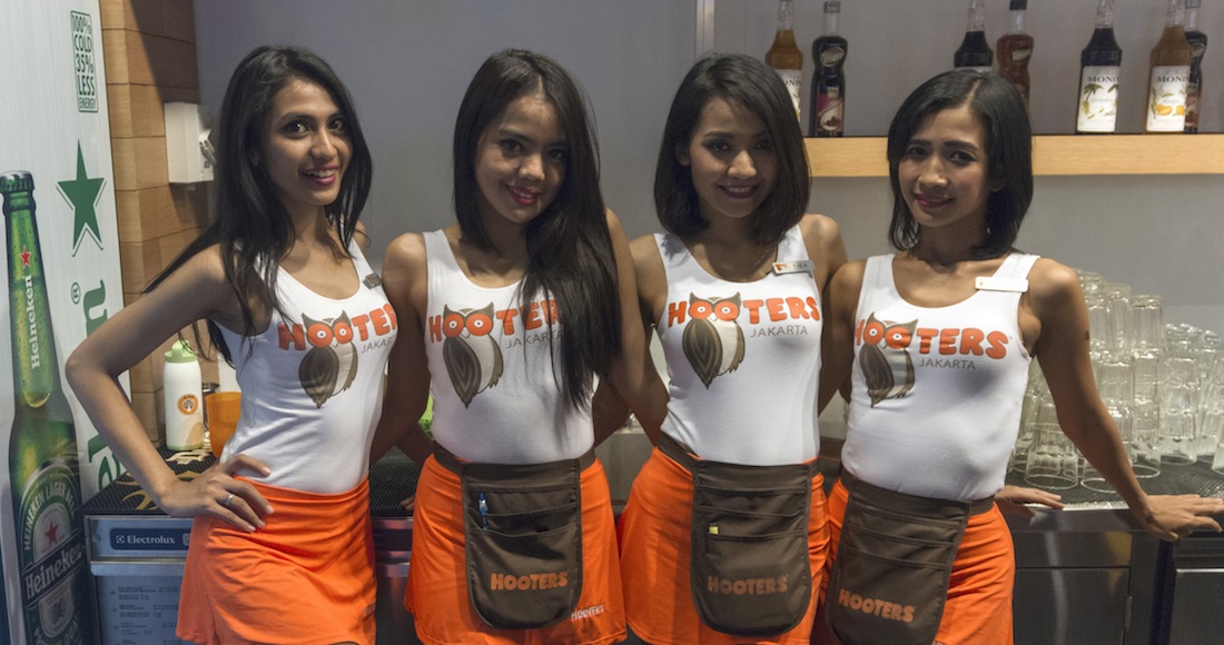 En marzo de 2017, Hooters celebró su preinauguración, entre la expectación que acompaña a la controvertida marca y la sorpresa de que se decidiese a abrir su primer restaurante en Yakarta, de mayoría musulmana, en lugar de abrir en la turística isla en Bali, de mayoría hindú.