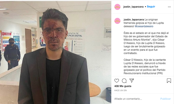 “Me agarraron a golpes, el señor Arturo Montiel del PRI me sacó de su casa. Éste es mi estado, me abrió la cabeza. Pido justicia”, denunció en un video el hijo de la cantante Lupita D´Alessio.