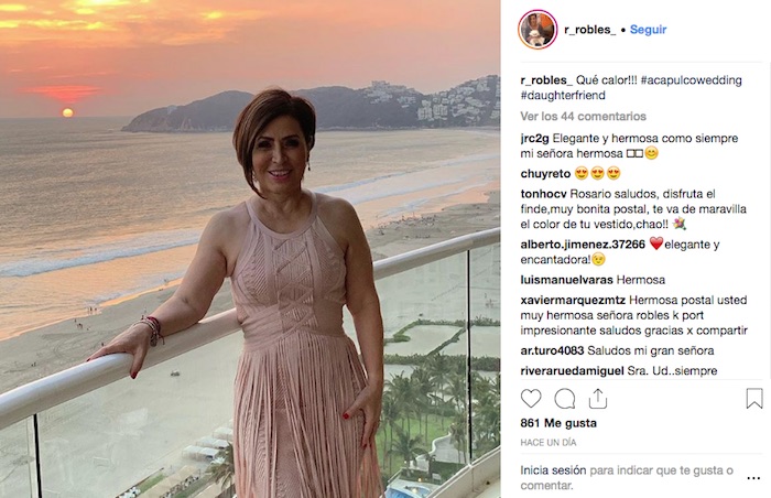 Al evento también se presume que asistió la ex Secretaría de Desarrollo Agrario, Territorial y Urbano, Rosario Robles, quien de la misma forma compartió una fotografía el 18 de marzo pasado, donde anuncia que estaba en la boda de un amigo.