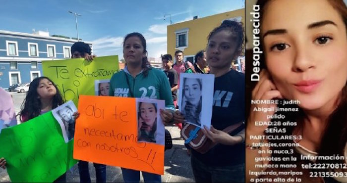 Judith Abigail era madre soltera. El 8 de agosto se fue con un hombre identificado como Eduardo al campo de tiro. Avisó a su familia que ya iba de regreso pero nunca llegó. Según la versión de “Lalo”, un grupo de hombres los chocó cuando circulaban sobre la carretera a Tecali, a la altura del kilómetro 13 y se quisieron llevar a los dos, pero él se quedó atorado con el cinturón de seguridad y no lo lograron.