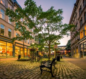 Las oficinas del centro se han vuelto remotas. El distanciamiento social aplica dentro de la oficina, pero por lo general sólo se requiere máscaras al entrar y salir del edificio. El astillero de la Marina de la ciudad fomenta el distanciamiento social, el desinfectante de manos y otras medidas de seguridad, pero no requiere mascarillas en la base. Los estudiantes disfrutan de los últimos días de buen clima en el campus de la Universidad de Dalhousie en Halifax, Canadá.