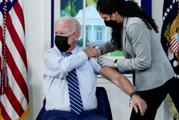 La medida de inversión surge a raíz de la presión a nivel nacional e internacional por el acaparamiento de vacunas contra la COVID-19 en Estados Unidos, país donde están aplicando la tercera dosis, mientras que hay países que menos del 15 por ciento de su población cuenta con al menos una. Foto: Evan Vucci, AP.