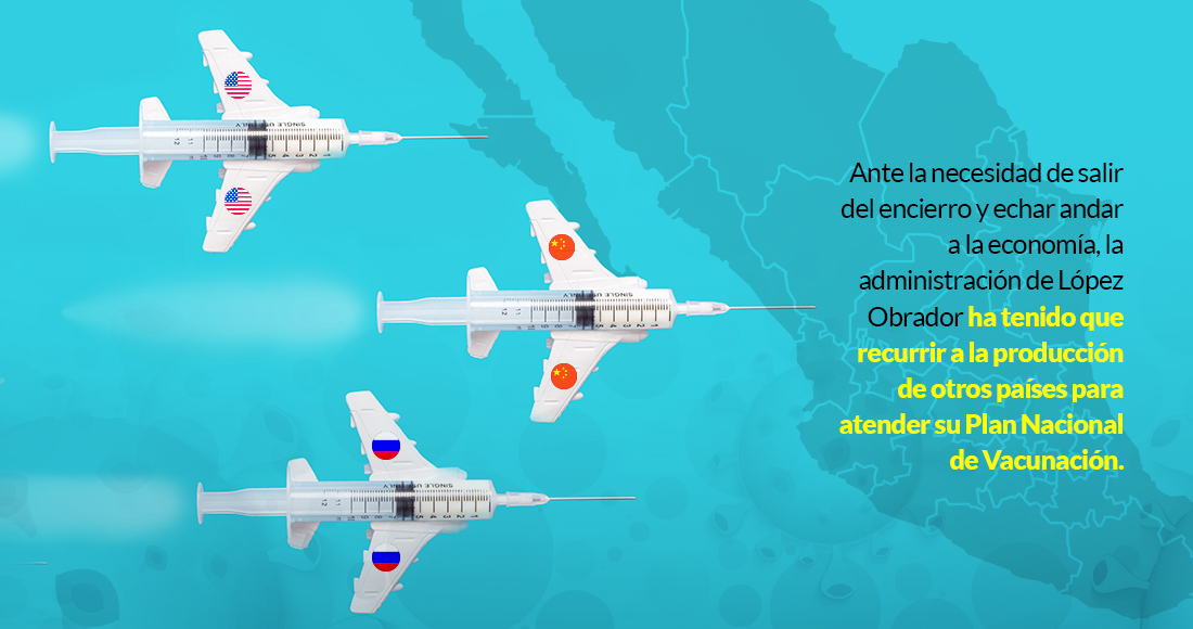 Sin embargo, ante la necesidad de salir del encierro y echar andar a la economía, la administración de Andrés Manuel López Obrador ha tenido que recurrir a la producción de otras potencias para atender su Plan Nacional de vacunación como es el caso de Rusia y China, países cuya influencia en la región ha sido mínima. Esta apuesta ha sido cuestionada, no obstante el Gobierno mexicano ha señalado que su objetivo es buscar vacunas en donde quiera que se produzcan, para ello ha establecido lazos con los gobiernos rusos y chinos, naciones que en Occidente suelen ser vistas con reserva ante su configuración política.