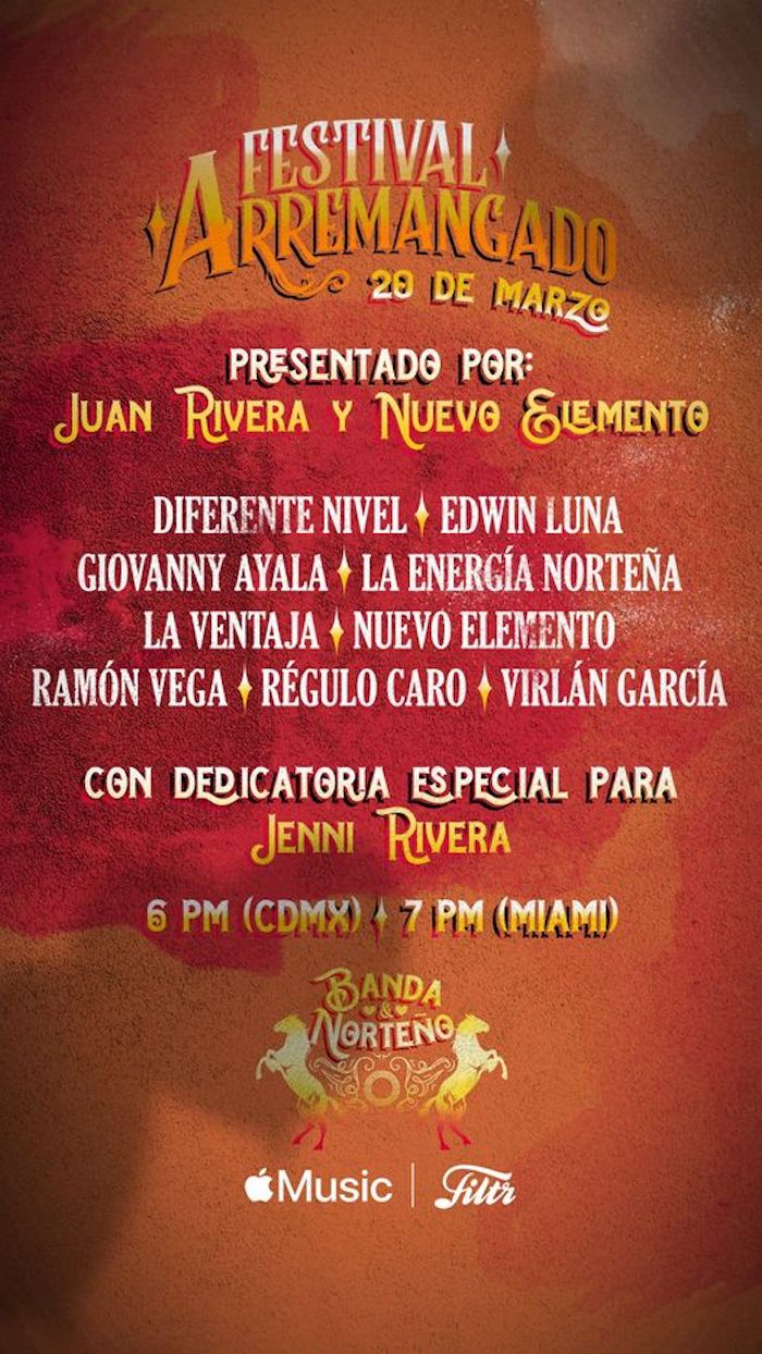 A través del canal Youtube de Filtr México, Rosie y Juan Rivera, hermanos de la cantante norteña, en compañía de la agrupación Nuevo Elemento, presentarán este evento en línea.