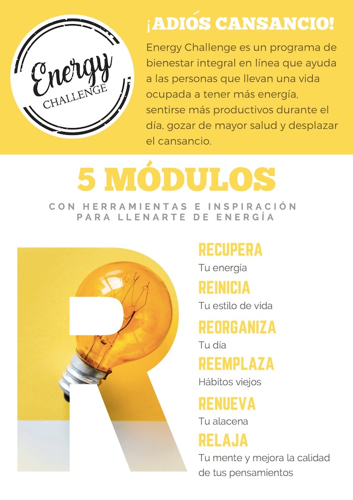 Las inscripciones al Energy Challenge se pueden realizar a través de su página web adioscansancio.com donde puede encontrar toda la información necesaria para comenzar con este programa de bienestar integral.
