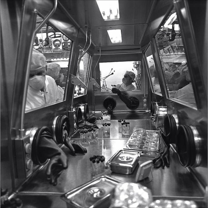 Esa preocupación por la contaminación cruzada sigue siendo un problema para las misiones espaciales modernas, pero fue aún más importante para nuestro primer contacto con material de otro mundo. Cuando las muestras de suelo lunar llegaron a Ames, el exterior de su paquete de transporte se esterilizó antes de abrirse.