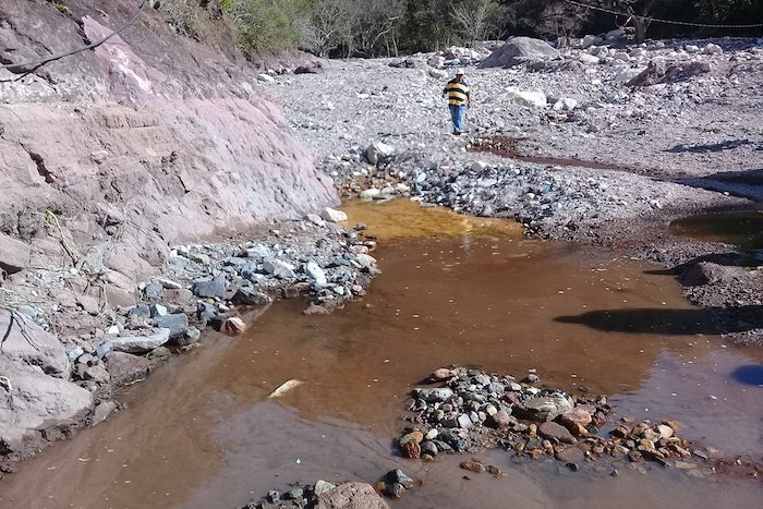 Enclavado en la Sierra Madre, en los límites del municipio de Rosario y el estado de Durango, en Plomosas nunca habían visto que el arroyo presentara el aspecto de estos días. Agua oscura y de tonos naranja con manchas blanquecinas han sorprendido a la comunidad, donde además se rompió la tubería que los abastecía de un venero montaña arriba.