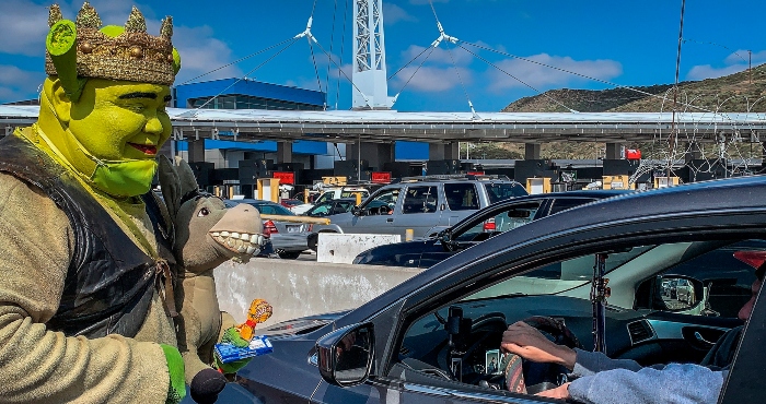 Hugo se disfraza de Shrek en Tijuana; busca fondos para pagar el tratamiento médico de su esposa