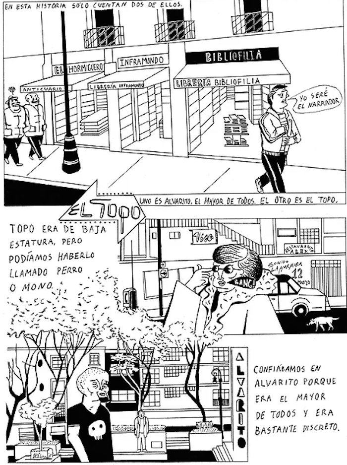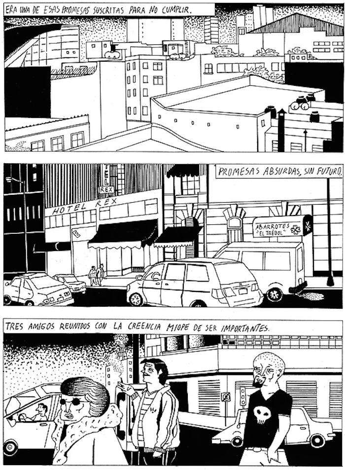 El centro de la Ciudad de México y sus laberínticas librerías de viejo son telón de fondo para una historia en donde lo libresco está presente en las formas del género negro y las múltiples influencias que dan forma a la técnica gráfica del autor.