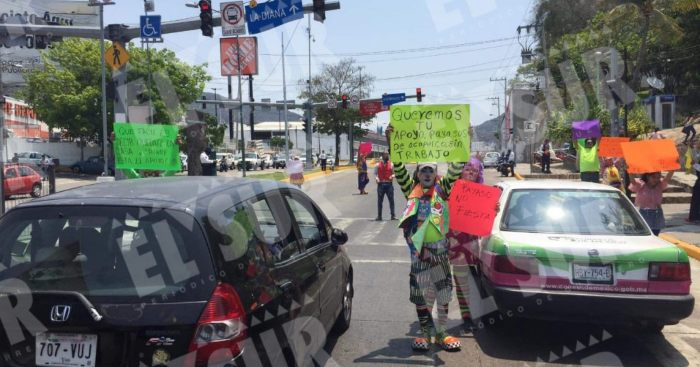 "No se crean eso de que el artista vive de aplausos eh!, enfatizaron los payasos mientras protestaban frente al Palacio Municipal de Acapulco.