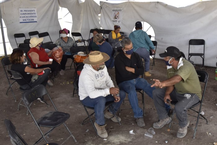 Ciudad de México, 20 de junio (SinEmbargo).- Pobladores de San Miguel Xaltocan, en el Estado de México, montaron un plantón en sus tierras, y exigieron al Gobierno de Andrés Manuel López Obrador cumplir con el pago de 128 hectáreas a cambio de permitir el paso a las obras del Aeropuerto Internacional Felipe Ángeles, en el municipio de Tecámac.