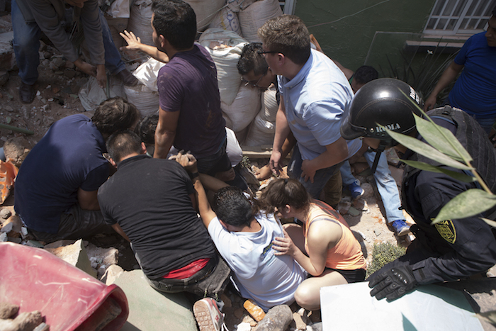 En las calles los voluntarios ayudan con cubetas, palas, picos, tubos, y lo que encuentran a su paso, a los soldados, bomberos, policías y otras autoridades que remueven los escombros para rescatar a la población. En las redes sociales, los profesionistas brindan sus servicios gratuitos.