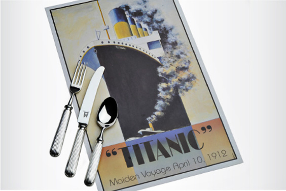 3. La empresa de cubiertos de plata fina, Arthur Price & Co, una de las principales proveedoras de curbetería para los lujosos comedores de los barcos de White Star Line, ha recreado los cubiertos utilizados a bordo del Titanic, cada pieza tiene grabado el logo de la compañía de barcos, como lo tenían los originales.