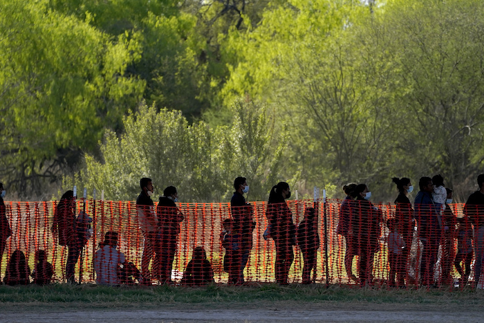 Migrants son custodiados por autoridades de Estados Unidos. Foto: Julio Cortez, AP.
