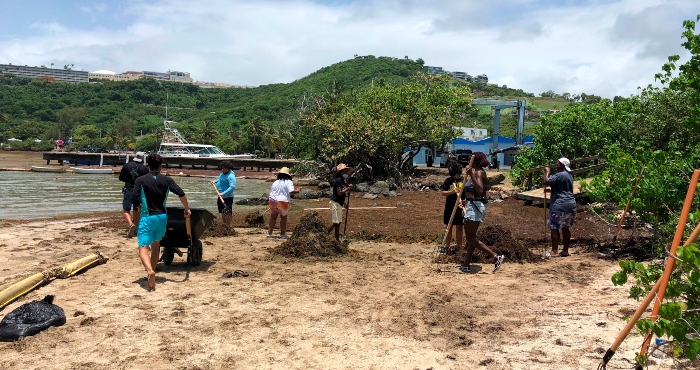 Y ante toda esta situación y para que no se agrave, un grupo de voluntarios ha estado limpiando el área de Las Croabas, en Fajardo, donde ya el sargazo se ha descompuesto, lo que emana un mal olor.