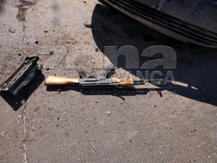 Según los reportes, en un tramo de kilómetro 1 de El Maguey, se encontraron 4 vehículos donde se presume se trasladaban los agresores; además de 3 armas largas (2 fusiles AK47 y 1 Fusil AR15) 2 armas cortas, tiradas en el suelo.
