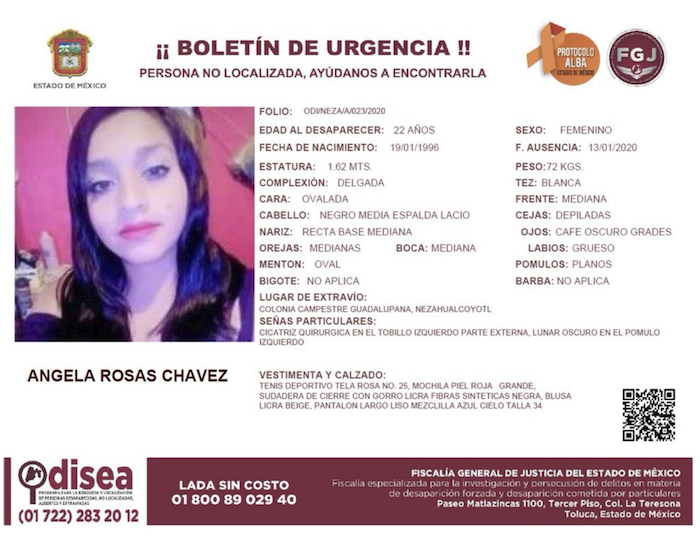 La joven había sido vista por última vez en la colonia Campestre Gualupana, municipio de Nezahualcóyotl, en el Estado de México.
