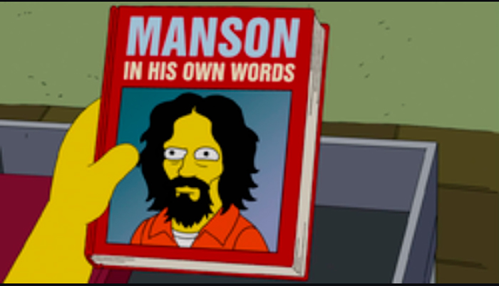 Los de Springfield han abordado prácticamente todos los temas de actualidad y Charles Manson no podía faltar. The Simpson usó a Manson en varios capítulos como "La familia Mansión" o "Helter Shelter", dos títulos que hacían parodia de películas anteriores.
