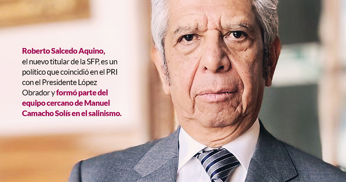 Pero, ¿quién es Salcedo Aquino? El nuevo titular de la SFP es Maestro de lengua y literatura por la Escuela Normal Superior, de la que se graduó con el trabajo “Disciplina escolar” y licenciado en Ciencias Políticas por la UNAM con la tesis “El cambio social: Reforma y revolución”, el flamante nuevo secretario de la Función Pública es reputado como auditor, pero fue oficial mayor de Camacho Solís cuando fue Secretario de Desarrollo Urbano y Ecología, en el inicio del gobierno de Carlos Salinas.