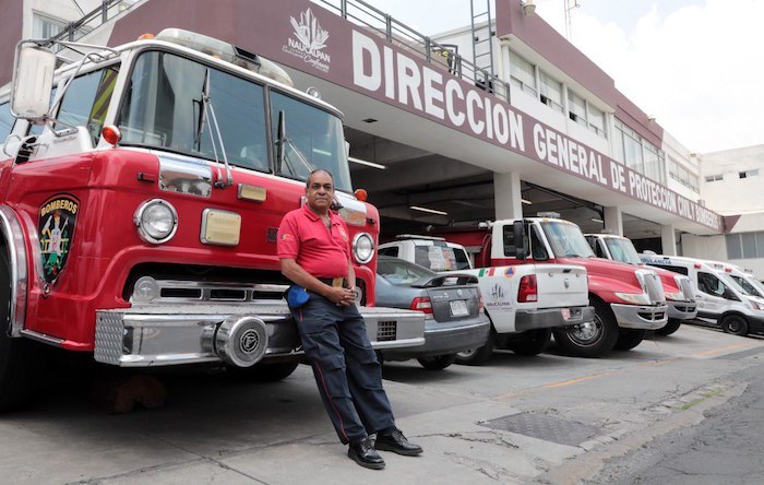 Rubén Vega González, jefe de turno del Heroico Cuerpo de Bomberos en Naucalpan, Edomex, cuenta que los primeros bomberos del municipio eran los choferes de un sitio de taxis, y fueron sus mentores en 1975. “Ellos eran taxistas, les pasaban la emergencia o se daban cuenta y se juntaban, con sus cubetas con las que lavaban sus carros comenzaban a apagar. Se integraron al cuerpo de bomberos cuando se fundó y entraron a la lista de raya”, dijo Vega González, quien es el elemento más antiguo del municipio aún en funciones.