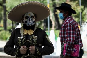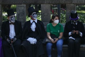 Ciudad de México, 22 de octubre (SinEmbargo/EFE).- Catrinas, catrines y charros recorrieron, este jueves, las inmediaciones de la Alameda Central de la Ciudad de México para llamar a la población a portar el cubrebocas y así evitar la propagación del SARS CoV-2.