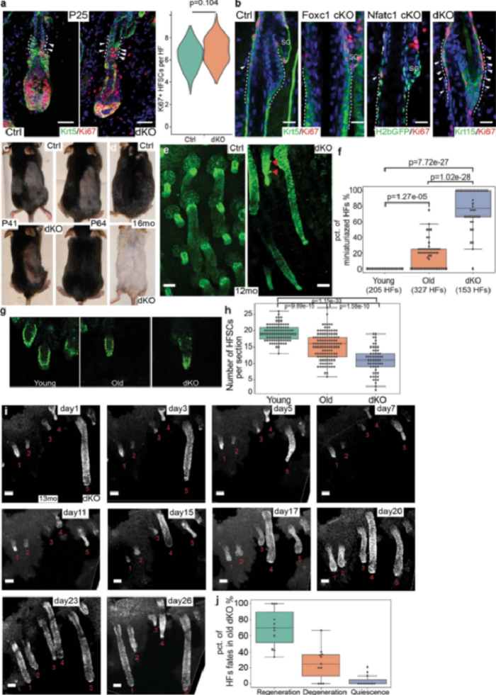 En el artículo donde se explica el hallazgo, los investigadores examinaron los procesos genéticos que determinan esta actividad, e identificaron dos genes denominados "FOXC1" y "NFATC1", responsables de atrapar las células madre en la protuberancia del folículo. Estos eran menos activos en las células más viejas del folículo piloso.