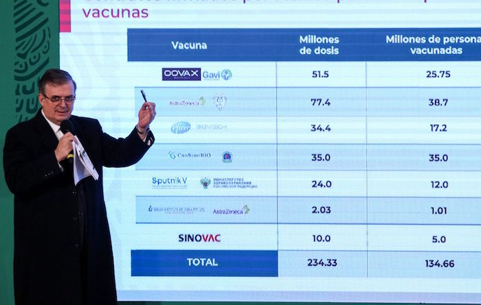 “Covax es un instrumento multilateral. Al día de hoy no han entregado una sola vacuna. México adquirió 51 millones de dosis para 25 millones de personas”, acusó hoy el Canciller durante la conferencia de prensa del Presidente Andrés Manuel López Obrador.